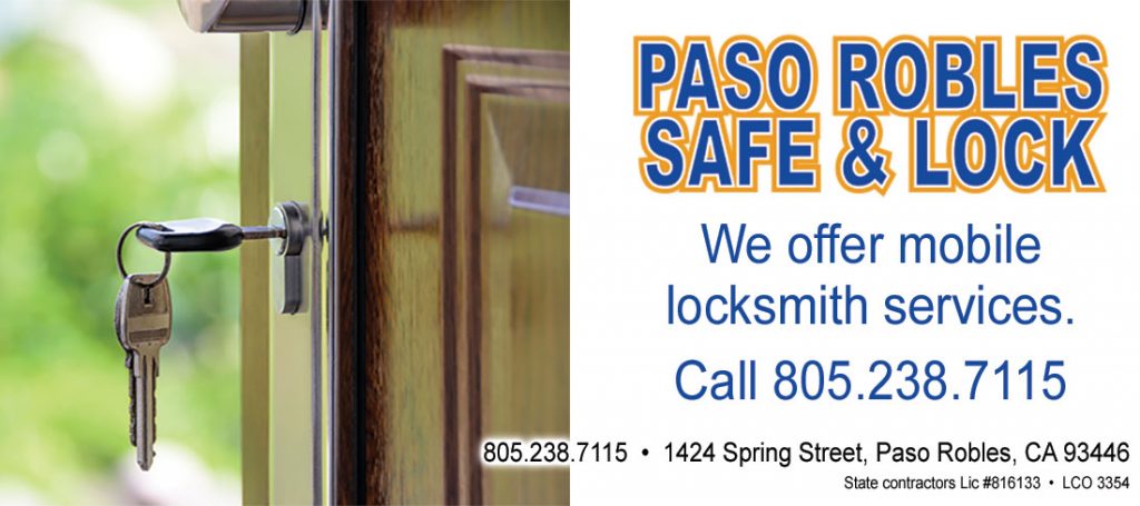 Paso Robles Locksmith, Atascadero Locksmith, San Miguel Locksmith, Morro Bay Locksmith, San Luis Obispo Locksmith, Safe, Lock, Keys, Locksmith | Commerical and Residentia